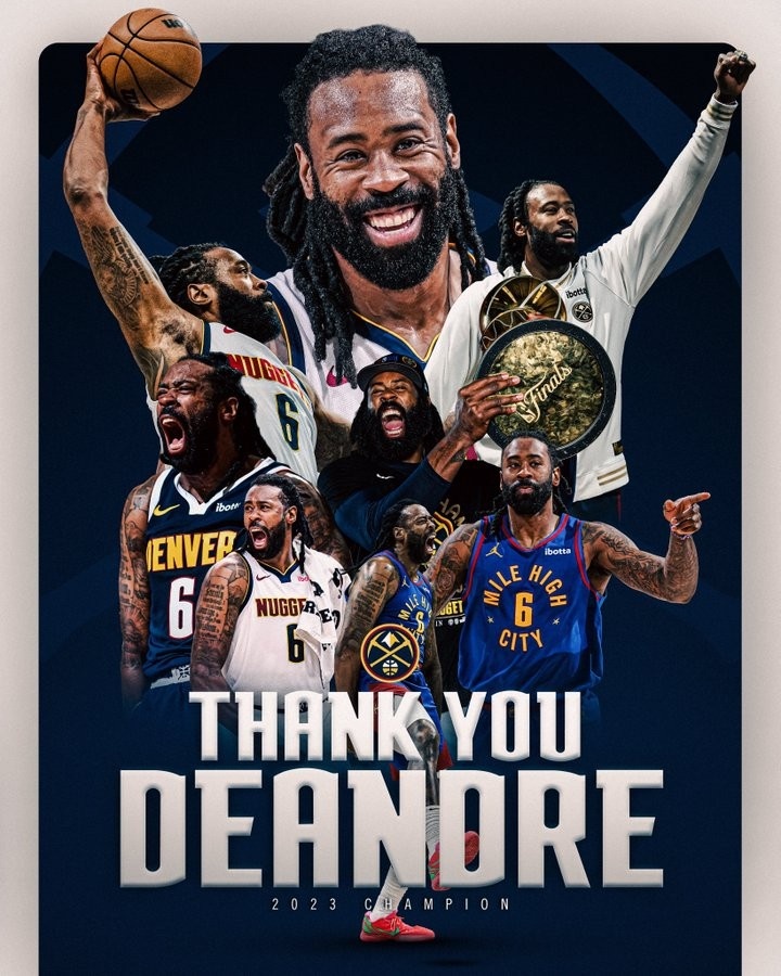 The Nuggets officially posted a picture to express their gratitude to DeAndre Jordan. The official tweet read: "A champion on and off the court! Thank you, DJ🏆"