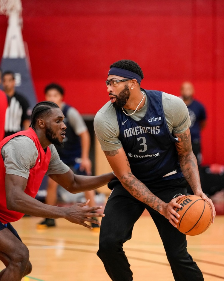 Today's Mavericks star Anthony Davis updated IG to post a wave of training photos to warm up the new season, and teammates Russell, Irving and Flagg all made their debut.