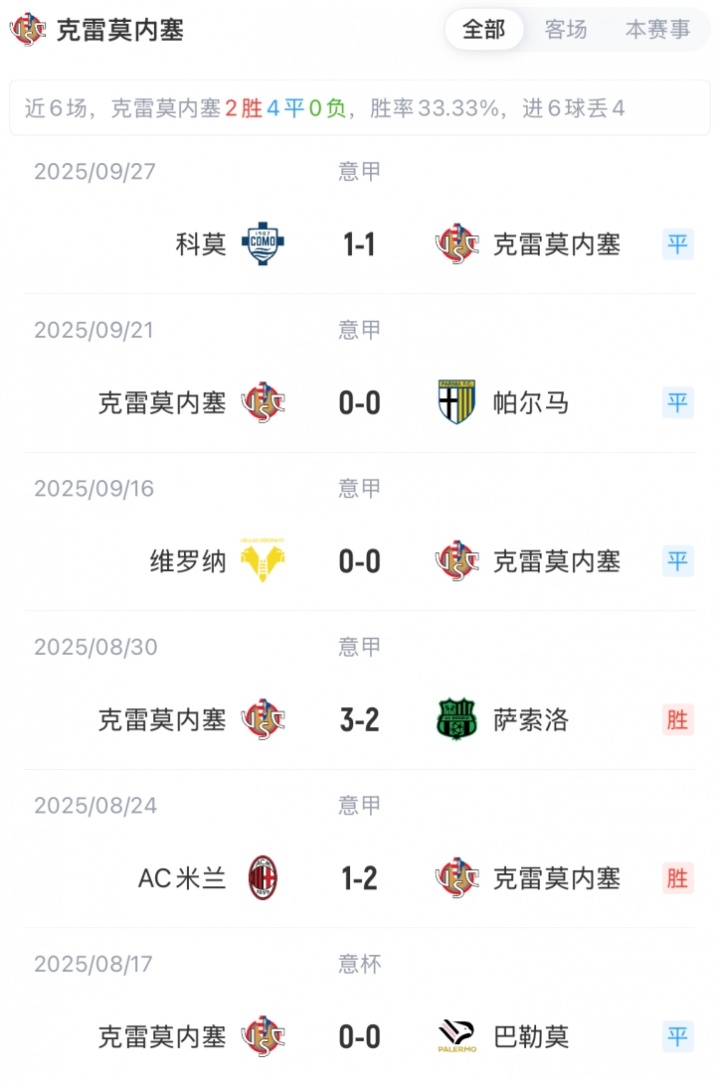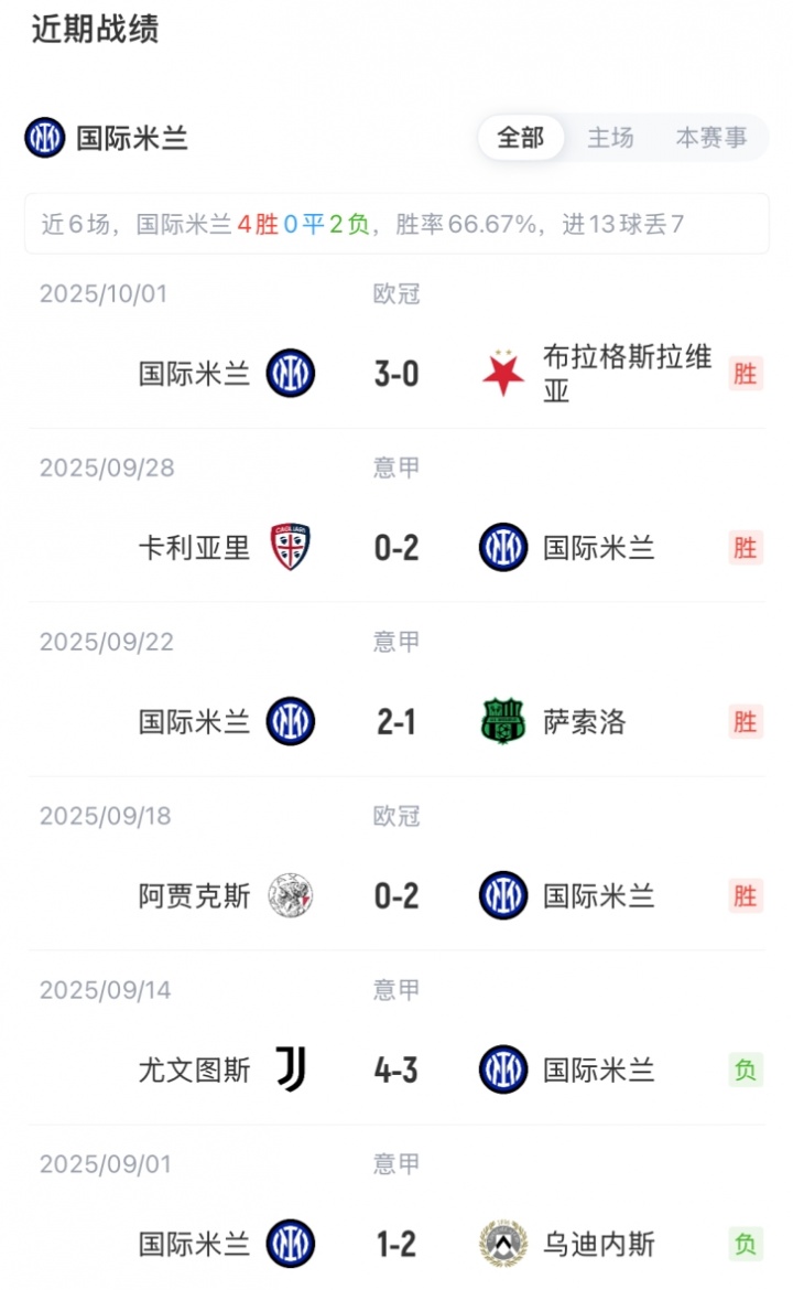 October 4th news In the 6th round of Serie A, Inter Milan's home match against Cremonese is about to begin, and the start before the game is released.