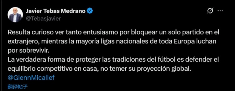 Tebas on the cancellation of overseas La Liga: I m curious why people are so keen to stop overseas games